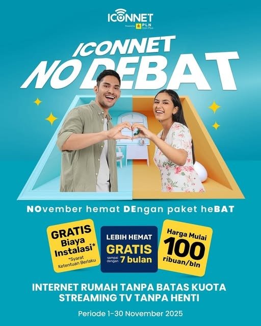 Memasuki bulan November 2025, PLN Icon Plus melalui layanan internet andalanya ICONNET kembali menghadirkan promo menarik dengan nama “NO DEBAT”, yang merupakan singkatan dari “NOvember hemat DEngan paket heBAT.” Promo ini hadir sebagai bentuk apresiasi kepada pelanggan setia sekaligus ajakan bagi masyarakat luas untuk menikmati koneksi internet cepat, stabil, dan terjangkau tanpa harus khawatir soal biaya.