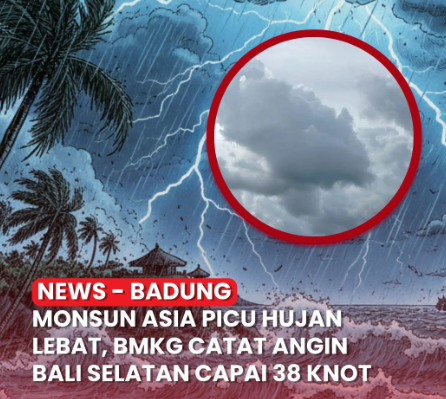 Monsun Asia Picu Hujan Lebat di Bali, BMKG Catat Angin Bali Selatan Capai 38 Knot