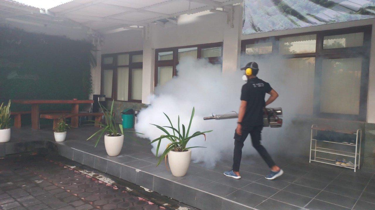 Kegiatan fogging dilakukan secara berkala dengan menyisir area dalam dan luar ruangan, termasuk ruang kerja, gudang, dan area taman. Hal ini bertujuan untuk menciptakan lingkungan yang bersih, sehat, dan bebas dari potensi penyakit.